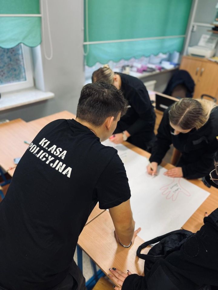 W ramach zajęć z okazji Międzynarodowego Dnia Praw Człowieka uczniowie klasy policyjnej z liceum w Czerwieńsku pracowali w zespołach nad plakatami i hasłami promującymi uniwersalne wartości: wolność równość i godność każdego człowieka. Zajęcia prowadził nauczyciel i funkcjonariusz zielonogórskiej komendy młodszy aspirant Kamil Sałek.