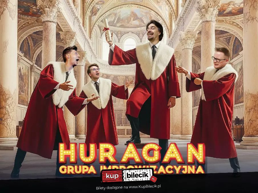 bilety: Po wakacyjnej przerwie grupa improwizacyjna Huragan zaprasza na pierwszy w "roku akademickim" spektakl improwizacji komediowej "Collegium Huraganum"! Grupa "Huragan" artyści: Jakub Stępniak, Ernest Dróżdż, Jakub Tyliszczak, Adam Błeszyński, Marcin MarczykGrupa improwizacyjna Huragan zaprasza na jedyny taki wiosenny spektakl improwizacji komediowej "Wiosenny Huragan"! Wiosenny - pierwszy dzień wiosny to idealny dzień na dawkę śmiechu! Improwizowany - znaczy, że zagramy zgodnie z tym, co publiczność nam podpowie! Komediowy - znaczy, że będzie śmiesznie! Jeśli lubicie dobrą zabawę, nie może Was zabraknąć! Bilety do nabycia na: KupBilecik.pl |
