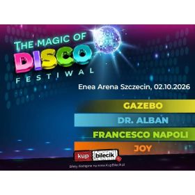 bilety: THE MAGIC OF DISCO FESTIWAL w Zielonej Górze. Przygotuj się na muzyczną podróż w czasie do złotych lat muzyki tanecznej! Start: 19:00 The Magic of Disco Festiwal artyści: Dr. Alban, Gazebo, Francesco Napoli, JoyThe Magic Of Disco to wyjątkowy festiwal, który gromadzi legendy sceny disco i eurodance, artystów, których przeboje podbiły parkiety na całym świecie. To właśnie ich utwory stały się symbolem niezapomnianych imprez, emocji i wspomnień, które do dziś łączą pokolenia fanów. Teraz te kultowe brzmienia powrócą na żywo w Szczecinie! Bilety do nabycia na: KupBilecik.pl |